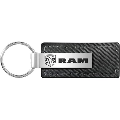 View full detailsThis Key chain has genuine leather and a metal rectangular key fob with a carbon fiber look. Horizontal design and layout.