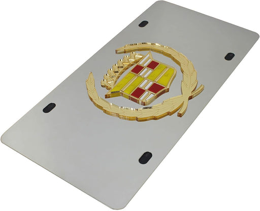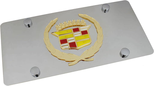 Au-Tomotive Gold Chrome Wreath Cadillac License Plate Frame Stainless Mirror Steel 3D
